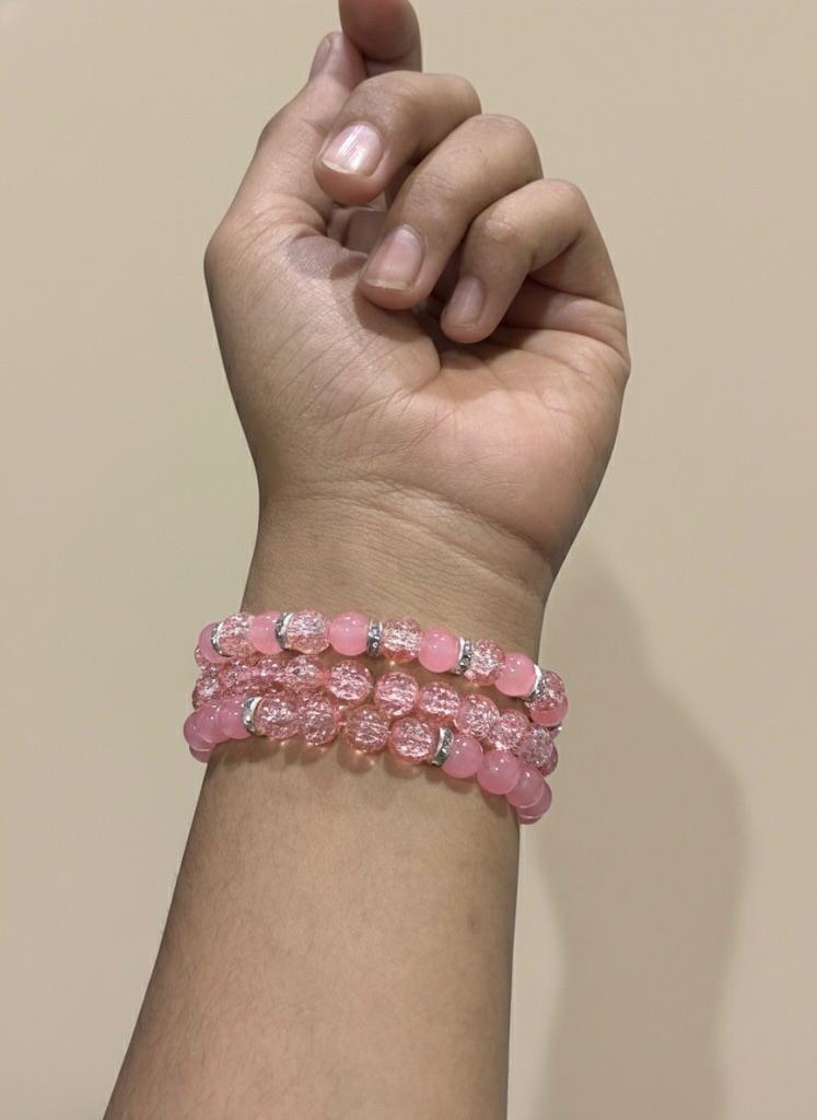 A sweet pastel trio made with glass pink beads and sparkly crackle accents. Soft, feminine, and perfect for adding a gentle pop of pink to any outfit. ЁЯМ╕тЬи